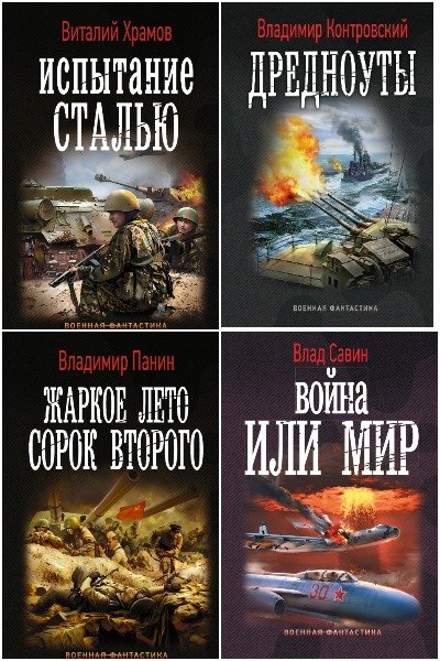 "Военная фантастика" - издаются книги русскоязычных авторов, как довольно известных, так и начинающих, пишущих фантастические боевики на военную тему. В основном это альтернативная история или тема попадания в военный период нашей истории. Здесь есть книги как новые, так и переиздания выходивших ранее.